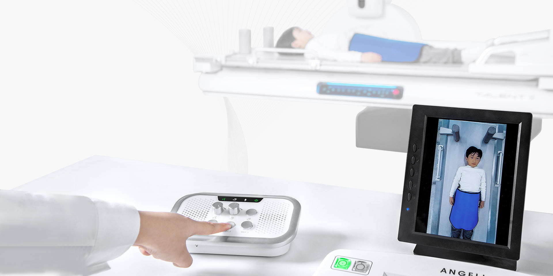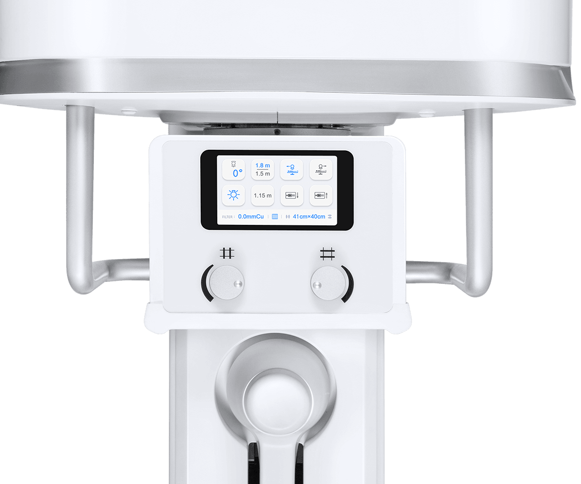 束光器可智能调节,根据不同部位自动设置照射野, 根据不同SID自动匹配探测器幅面